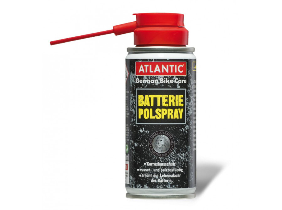 Bateriepolspray ATLANTIC chrání proti vlhkosti a korozi kovové kontakty baterie elektrokol. Základem je minerální mazivo. Zajišťuje vyšší počáteční výkon a zabraňuje samovybíjení. Díky vodivosti spreje lze plně využít výkon baterie. Její životnost se tak zvyšuje. Mazivo je odolné proti vodě a soli. Optimální ochrana proti povětrnostním vlivům.