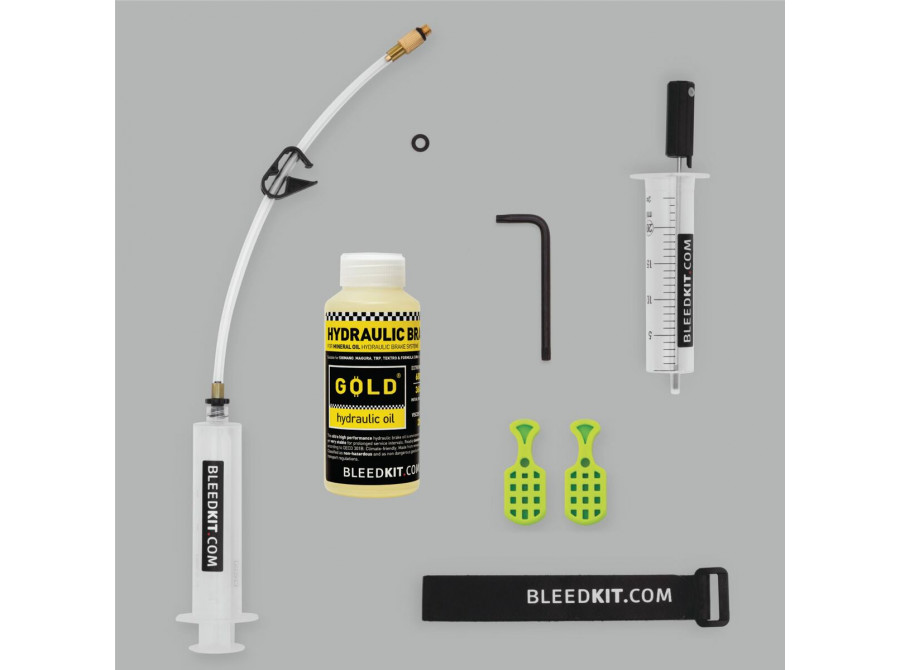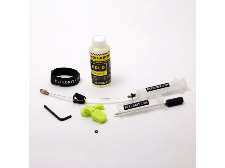 Zlatý hydraulický olej 100 ml - vlastní značka Bleedkit.com pro vysoce výkonné oleje pro brzdové systémy určené pro použití s minerálním olejem.