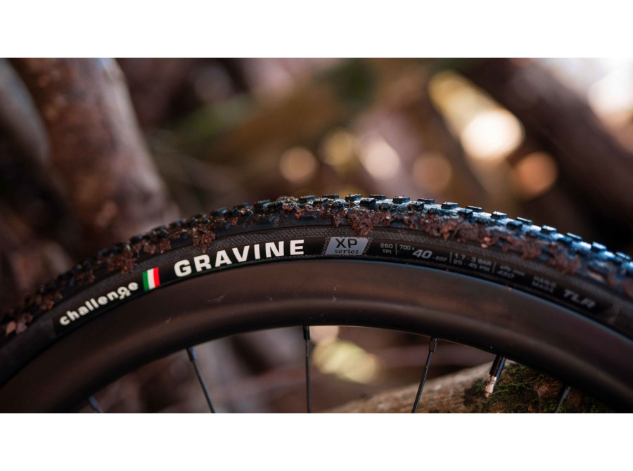 Plášť Gravine je navržen pro lepší výkon a trakci v blátivém a kamenitém terénu. S rostoucí poptávkou po robustnějších gravel pláštích vyvinula společnost Challenge novou technologii aplikovanou na ručně vyráběnou konstrukci, která přidává ochranu Xtra Protection (XP) pro vytrvalejší jízdu v drsnějším terénu. Plášť Gravine XP je navržen tak, aby vás dovedl do míst, kam se ostatní nedostanou. Kromě CORAZZA ARMOR SILVER pro zvýšenou ochranu bočnic, obsahuje Gravine XP také CORAZZA ARMOR GOLD, speciální vrstvu hustě tkaného materiálu umístěnou na plášti, která jej dále zpevňuje pro agresivnější podmínky.