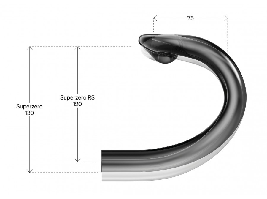 Ergonomický tvar RHM-EVO s dosahem 75 mm a dropem 120 mm poskytuje pohodlnou a přirozenou jízdní pozici s plynulým přechodem mezi horním a spodním úchopem. 6° flare (rozšíření spodní části) zlepšuje stabilitu a kontrolu, zejména v rychlých sjezdech a na technicky náročných úsecích.