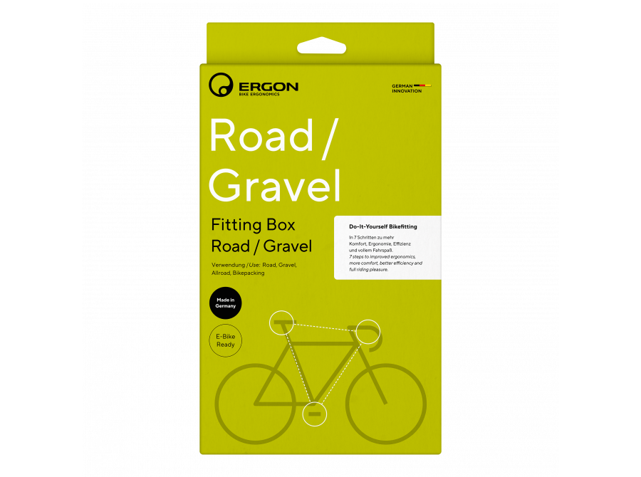 Jak dostat ze silničky nebo gravelu maximum? Správně nastavené tři kontaktní body: sedlo, řídítka a pedály. ERGON Fitting Box Road / Gravel od Ergon ti umožní přesné a systematické nastavení kola podle tvé postavy – bez nutnosti předchozích zkušeností.