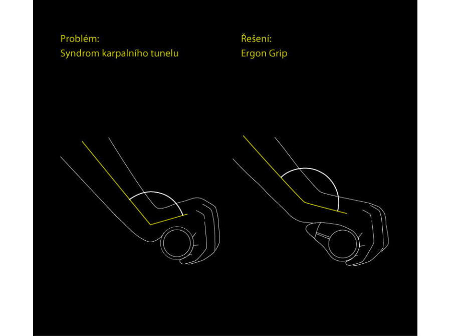 Gripy Ergon GP4 využívají rohy s prostorem pro celou dlaň, což přináší další pozice úchopu a lepší stabilitu při stoupání. Úhel rohů může být nastaven nezávisle na úhlu gripu pro jeho perfektní přizpůsobení. Objímka zafixuje grip na místě a zabraňuje jeho pohybu při jízdě. Gripy účině působí proti znecitlivění rukou, bolestem prstů a unavě předloktí. Speciální certifikovaný materiál vyvinutý v Německu zaručuje špičkovou kvalitu. Gripy jsou kompatibilní s karbonovými řidítky.