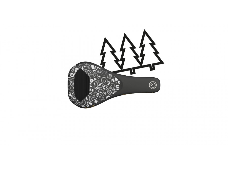 Jedinečné piktogramy představují rychlost, cyklistiku, přírodu a kořeny Vali v Rakousku. Všudypřítomný smajlík dokonale odráží její pozitivní přístup. Její seznam ingrediencí pro dokonalé sedlo zahrnuje: super kompaktní tvar s maximální vůlí pro plášť, protiskluzový povrch, zónu proti tření a 360° polstrování pro extra ochranu nohou.
