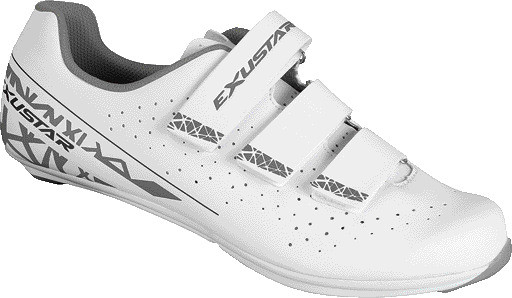 Sportovní silniční tretry Exustar. Tvarovaný, pohodlný svršek z PU kůže s prodyšnou síťovinou a pásky na suchý zip. Kompozitní podešev z nylonu a skleněných vláken má vestavěné ventilační otvory Air Control, které vás udrží v chladu, a protiskluzové vycpávky jsou připraveny, když se vaše nohy dotknou země.