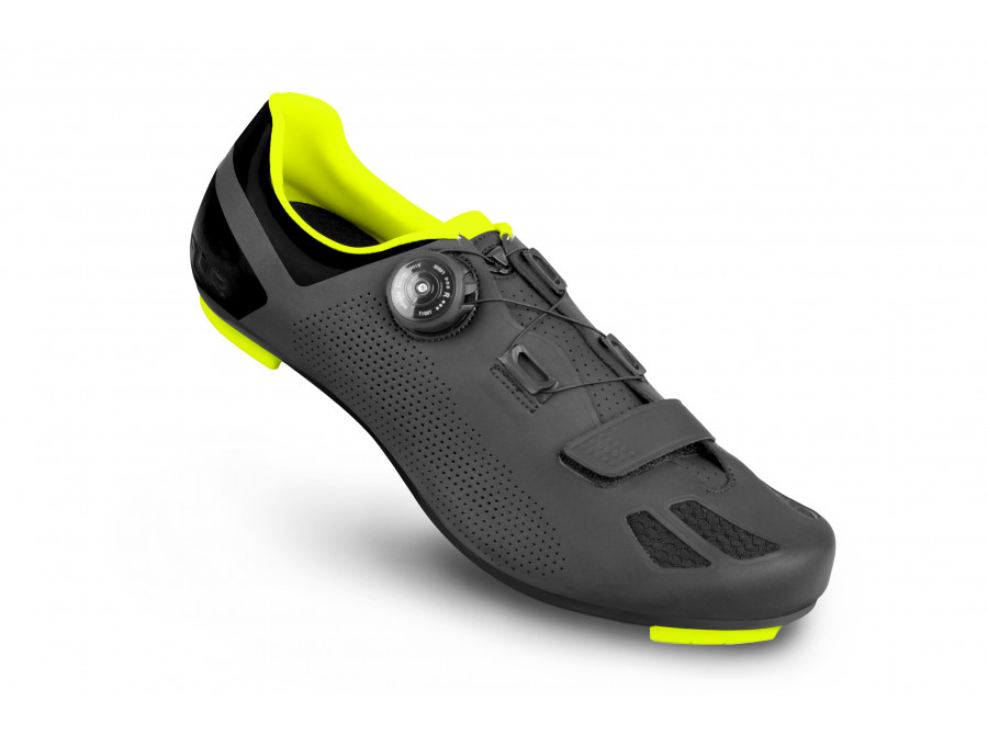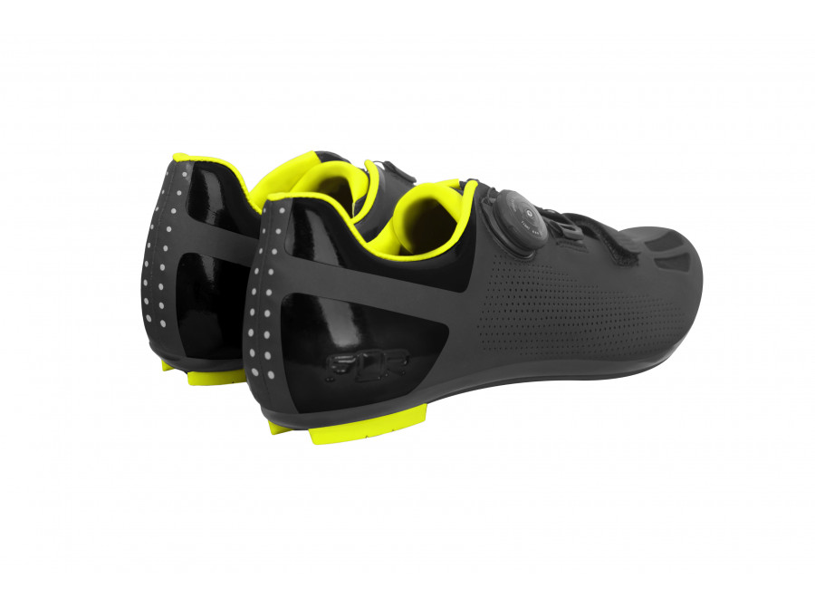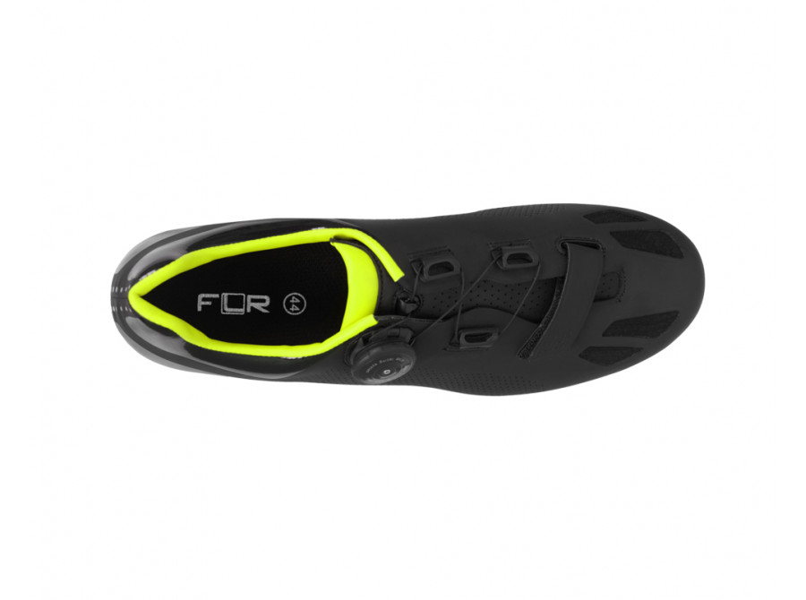 Model F-11 využívá bezešvou konstrukci svršku tvořenou z jednoho kusu prvotřídního mikrovlákna, který se přizpůsobí tvaru vaší nohy. Systém šněrování je založen na jediném kolečku Atop a pásce na suchý zip. Zapínání je tak jednoduché a bezpečné. Kombinace otvorů z nylonové síťoviny, perforovaných otvorů a prodyšného jazyka slouží k ventilaci. Model F-11 je vybaven podrážkou R250, která zvyšuje výkon a přenos síly do pedálů. Přesto tretry zůstávají lehké a pohodlné.