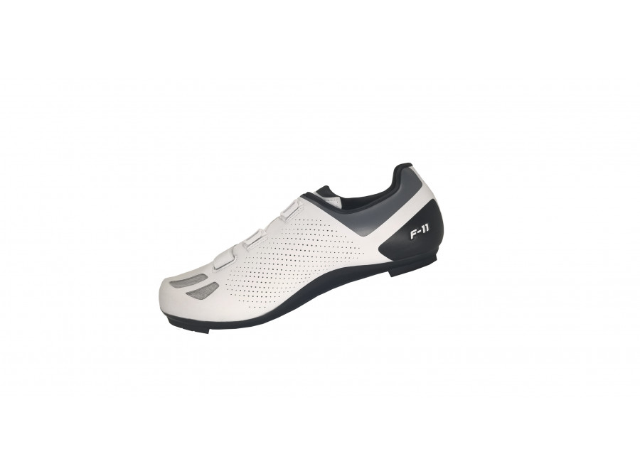 Model F-11 využívá bezešvou konstrukci svršku tvořenou z jednoho kusu prvotřídního mikrovlákna, který se přizpůsobí tvaru vaší nohy. Systém šněrování je založen na jediném kolečku Atop a pásce na suchý zip. Zapínání je tak jednoduché a bezpečné. Kombinace otvorů z nylonové síťoviny, perforovaných otvorů a prodyšného jazyka slouží k ventilaci. Model F-11 je vybaven podrážkou R250, která zvyšuje výkon a přenos síly do pedálů. Přesto tretry zůstávají lehké a pohodlné.