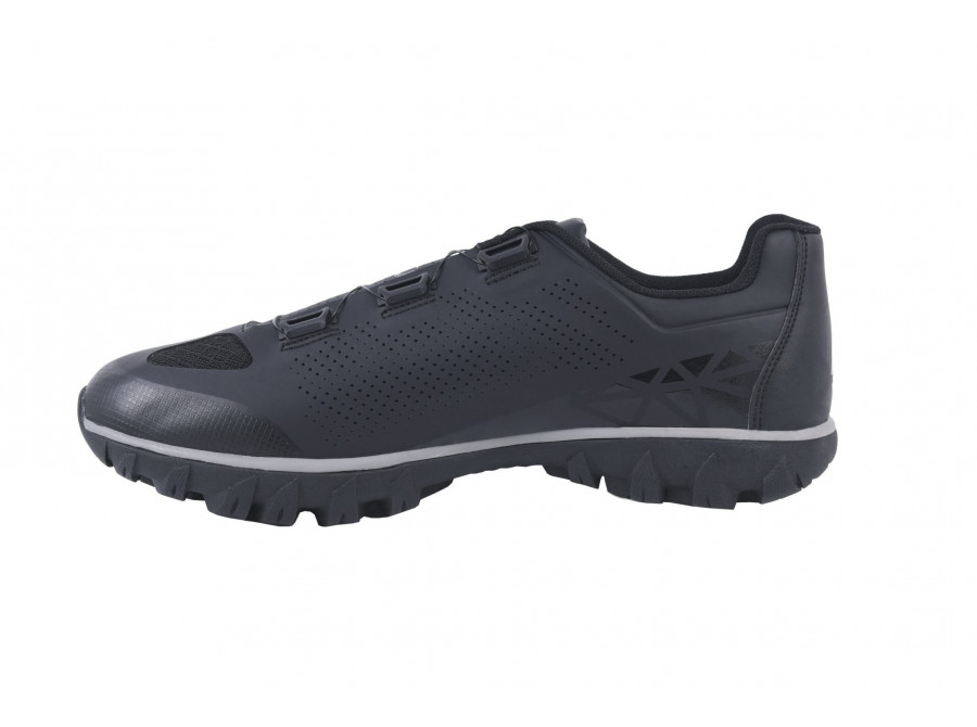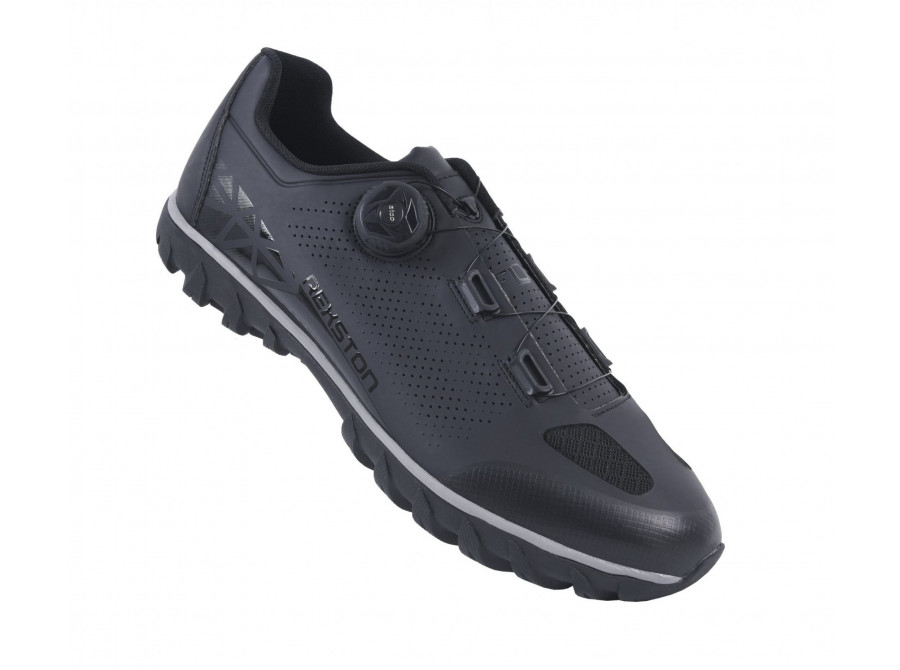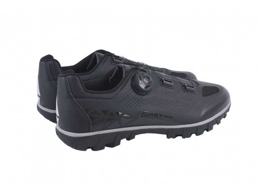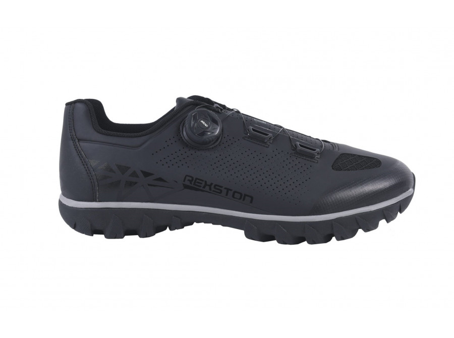 Tato bota má vysoce kvalitní syntetický svršek, otvory ze síťoviny pro ventilaci a dodatečnou ochranu díky zesílenému prstovému boxu. Klasické šněrovací zapínání a jeden pásek na suchý zip nabízí bezpečné a nastavitelné uchycení. Nová podrážka AT200 byla vytvořena speciálně pro model Rexston, aby pomohla svému majiteli dosáhnout maximálního výkonu při šlapání na kole i pohodlí mimo sedlo. Zesílená nylonová deska zajišťuje silný přenos síly do pedálů s podpůrnou mezipodešví EVA. Plný gumový dezén STKgrip™ poskytuje vynikající přilnavost, trakci a stabilitu v kamenitém nebo mokrém terénu. Pro dokonalou ochranu kufrů slouží kruhová bariéra, která chrání tuto oblast proti opotřebení během dlouhodobého používání.