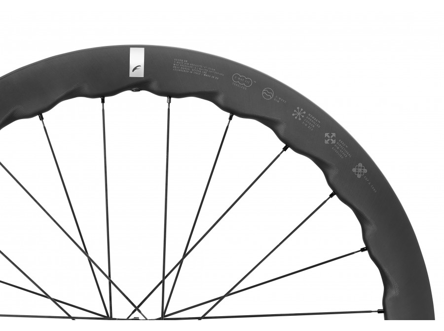 Základem je prémiový karbonový ráfek ze směsi FF100, který je extrémně lehký, reaktivní a zajišťuje, že se neztratí ani watt vaší energie. Matný povrch ráfku vystupuje přímo z formy a dává na odiv strukturu karbonových vláken. Unikátní aerodynamický profil 2-Wave (výška 47–52 mm) prokazatelně šetří energii (až 29 % při úhlech větru 10°–20°) a vnitřní šířka 30 mm je perfektně optimalizována pro pláště o šířce 47–50 mm. Díky této šířce plášť drží optimální tvar, což zlepšuje kontrolu, ovladatelnost a bezpečnost v zatáčkách.