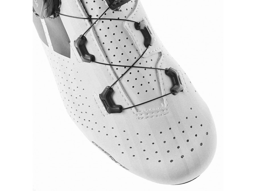Boty mají prodyšný svršek s perforacemi, systém BOA L6 pro přesné nastavení velikosti a lehkou karbonovou nebo karbon-kompozitní podrážku pro efektivní přenos síly.