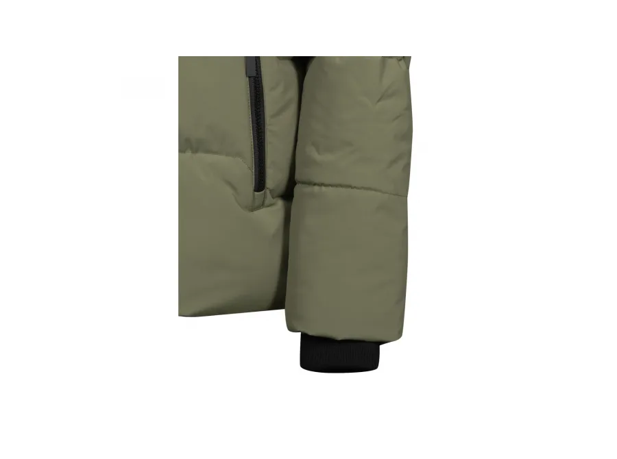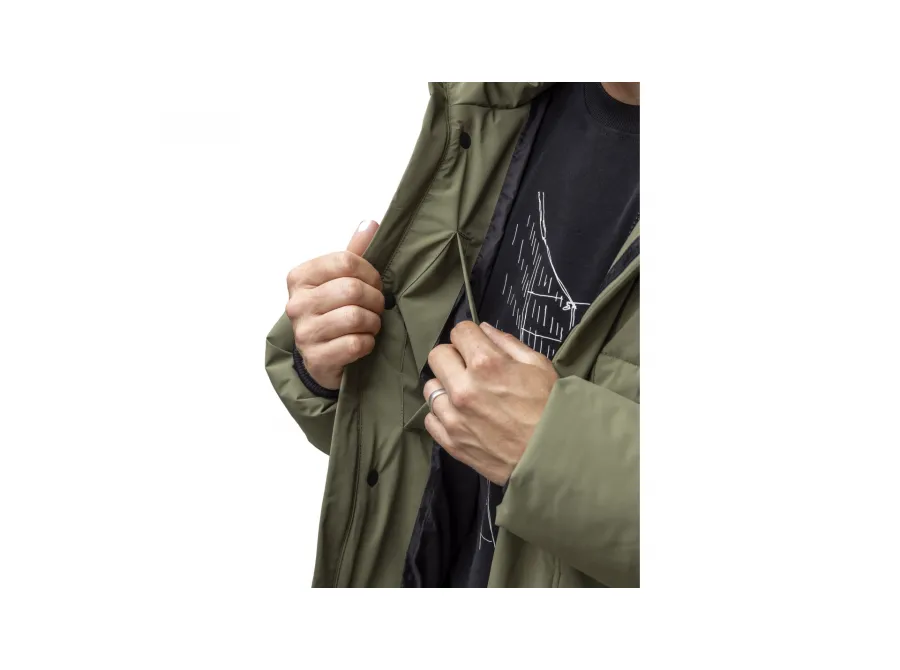 Bunda je vybavena odepínací kapucí, stahováním v dolním lemu a příjemnými žebrovanými manžetami uvnitř rukávů. Perfektně se hodí k džínám i pracovním kalhotám – ideální pro městské dobrodružství i volný čas venku.