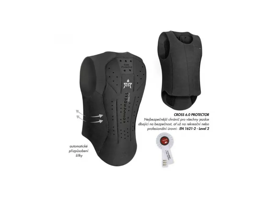 Zažij naprostou volnost pohybu a špičkovou ochranu v sedle s páteřákem Komperdell Ballistic Vest Champion – modelem, který posouvá bezpečnost jezdců na novou úroveň. Tato inovativní vesta je vybavena vícevstvým chráničem zad Cross 6.0 z adaptivní pěny s dvojitou hustotou, který splňuje přísnou normu EN 1621-2 Level 2. Díky bočním ochranným zónám a velkorysému perforování nabízí maximální prodyšnost i při intenzivním tréninku či závodě.