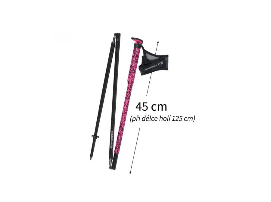 Komperdell FXP Carbon Ultra Green/Pink – perfektní skládací hole pro náročné trekaře, kteří hledají lehkost, výkon a styl. S pevnou délkou od 105 do 135 cm v krocích po 5 cm a kompaktní velikostí 45 cm ve složeném stavu jsou tyto hole ideálním parťákem na cesty, který se snadno vejde do batohu nebo do zavazadla.