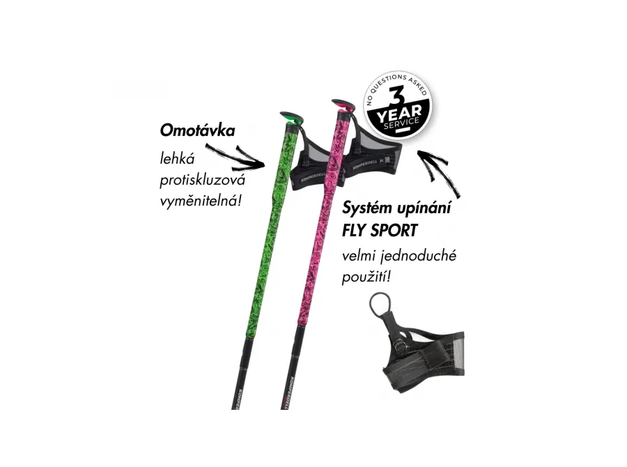 Trail Pro Tape grip nabízí pohodlný úchop, který je ideální pro dlouhé treky a náročné podmínky, a díky Fly Sport strap je vaše ruka stabilní a chráněná i při intenzivním používání. Hole jsou vybaveny FXP skládacím systémem, což znamená, že ji můžete snadno složit na kompaktní velikost, což je ideální pro skladování nebo přenášení.
