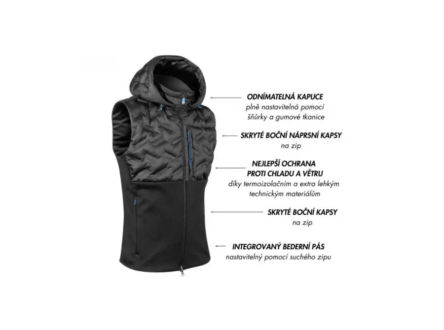 Odnímatelná kapuce, nenápadné kapsy a sportovní střih dělají z Thermovestu praktickou a stylovou volbu pro všechny, kdo chtějí bezpečnost, pohodlí a svobodu pohybu – v jakémkoli terénu.