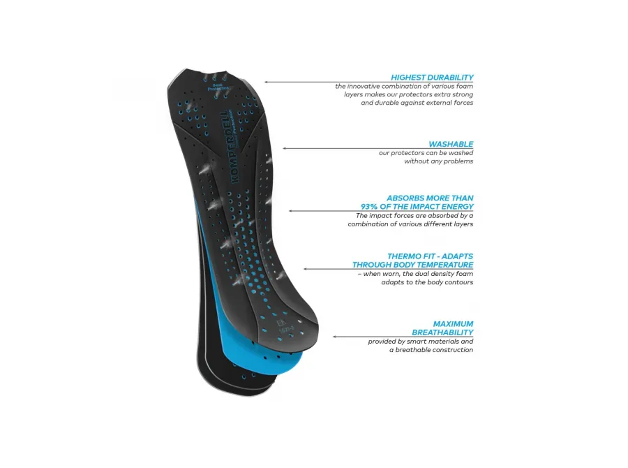 Srdcem vesty je vícevstvený chránič Cross 6.0 z adaptivní dvouhustotní pěny s certifikací EN 1621-2. Dokonale kopíruje pohyby těla, ale při nárazu okamžitě ztvrdne a absorbuje energii – spolehlivě ochrání páteř při pádu jak na koni, tak na lyžích.