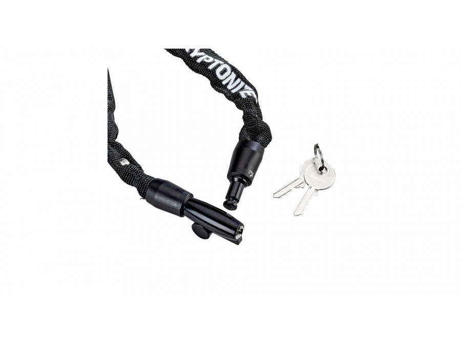 Zámek je tvořen 4mm silnými ocelovými články, které jsou chráněny odolným textilním návlekem. Ten chrání rám kola nebo příslušenství před poškrábáním a zároveň zvyšuje životnost zámku. Zajištění probíhá pomocí jednoduchého cylindrického zámku s klíčem.