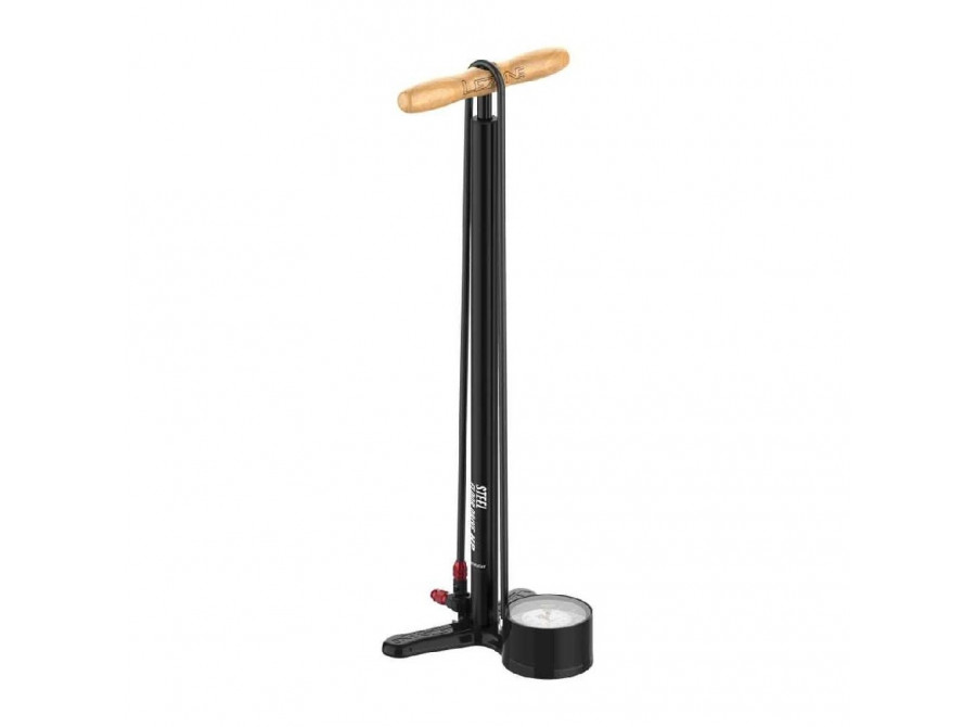 lakovaného dřeva,hadice lze našroubovat na stupačky pumpy pro lepší převoz nebo skladování,120 cm dlouhá vysoce kvalitní hadice,dlouhý píst se zmenšeným válcem snižuje úsilí pumpování,velký manometr do tlaku 220 Psi/ 15 bar