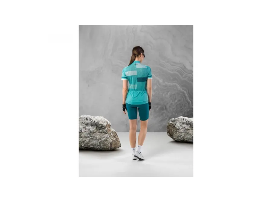Dres HZ FINESSA je vysoce kvalitní dámský cyklistický dres vyrobený z material mixu s Race Vent (zadní strana). Je lehký, elastický, rychleschnoucí, prodyšný a celoplošně potištěný. Stojáček a extra dlouhý poloviční zip poskytují dodatečné pohodlí a ochranu před živly. Raglánový střih a 3 zadní kapsy nabízejí skvělou funkčnost, zatímco elastické manžety volného střihu a pas potažený silikonem udržujte dres na místě. Reflexní prvky zvyšují viditelnost při jízdě.