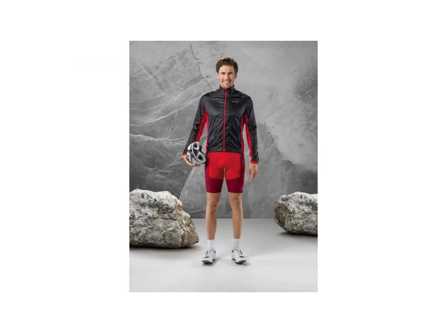 Technicky propracovaná hybridní bunda s ochranným materiálem Windshell v oblasti paží, ramen a hrudníku. To znamená: maximální ochranu proti větru a zároveň plnou volnost pohybu díky lehkému materiálu Race-Elastic v zadní části. Dostatek prostoru pro menší drobnosti nabízí skrytá náprsní kapsa na zip a zadní kapsa na zip. Velkorysé odrazky na zadní straně rukávů jsou nezbytné pro všechny, kteří nechtějí být přehlíženi.