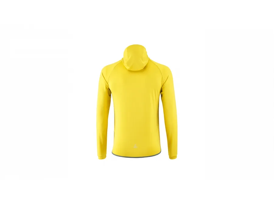 Oblast hrudníku je zdvojená větruodolným materiálem Windshell, který tě ochrání před chladným větrem. Mikina je lehká, rychleschnoucí, elastická a prodyšná. Nechybí integrovaná kapuce, podložený přední zip, náprsní kapsa na zip, elastické manžety a spodní lem pro pohodlné nošení. Reflexní prvky zajišťují vyšší viditelnost při zhoršených podmínkách.