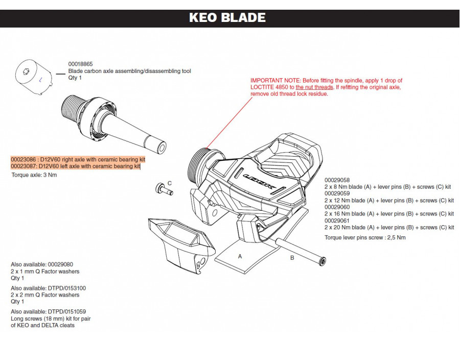 Prémiové komponenty v této sadě umožňují údržbu 1 páru pedálů Look.