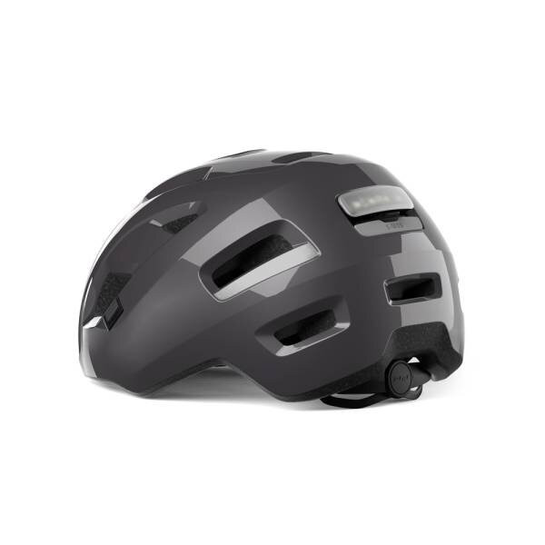 Minimalistický vzhled podtrhuje integrovaný štítek, který chrání před sluncem a zároveň nenarušuje elegantní městský styl. Síťka proti hmyzu ve předních ventilačních otvorech zvyšuje komfort při jízdě. O snadné a bezpečné zapnutí se stará anti-pinch přezka, která zabraňuje skřípnutí kůže.