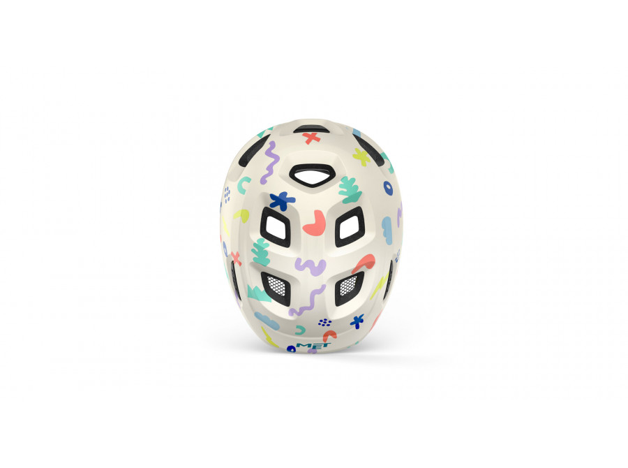 Skořepina helmy MET Hooray má v zadní části účelně zploštělou část, aby byla pohodlná v jakékoli dětské sedačce. Pokrývá také velkou část dvou nejcitlivějších oblastí mozku – týl a spánky. Vnitřní tvar obsahuje navržený systém vzduchových kanálů pro usnadnění proudění vzduchu a naše unikátní technologie MET Bimbi Secure zajišťuje, že na fontanele (temenní měkká část) nejsou žádné tlakové body.