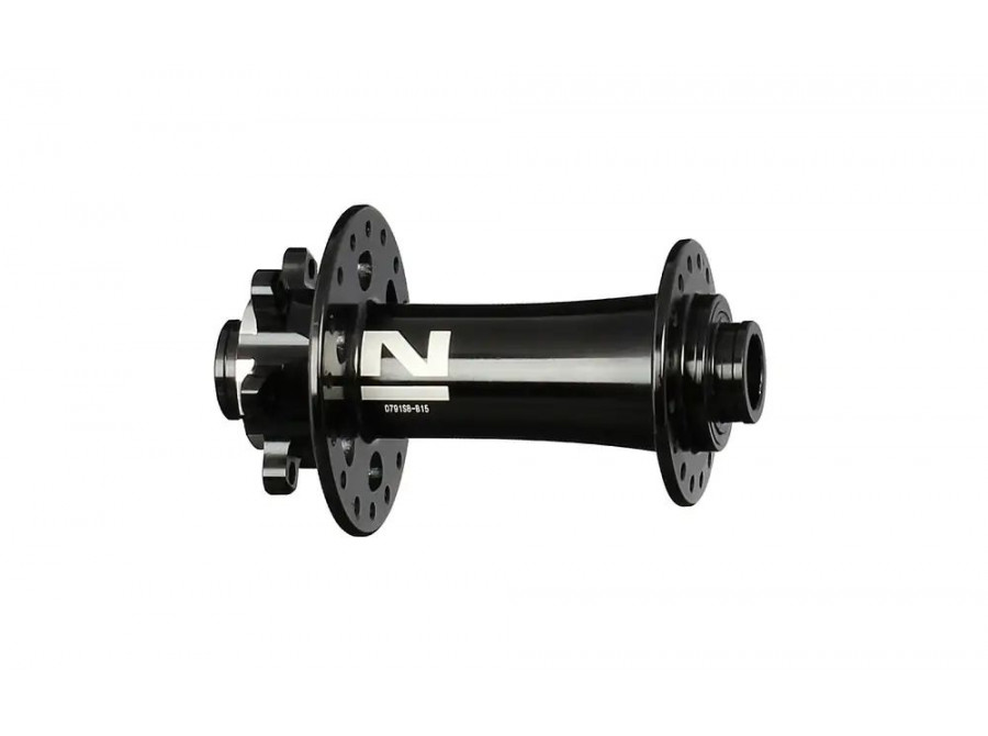 Přední MTB náboj D791SB-B15 Boost, leštěný eloxovaný černý, 32 otvorů, osa 15x110 mm, OEM.