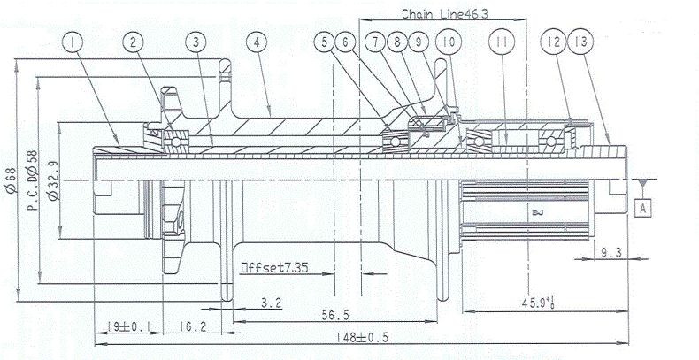 Ořech: Alu Shimano 11S typu B2, s podložkou pro 8/9/10 9rychlostní