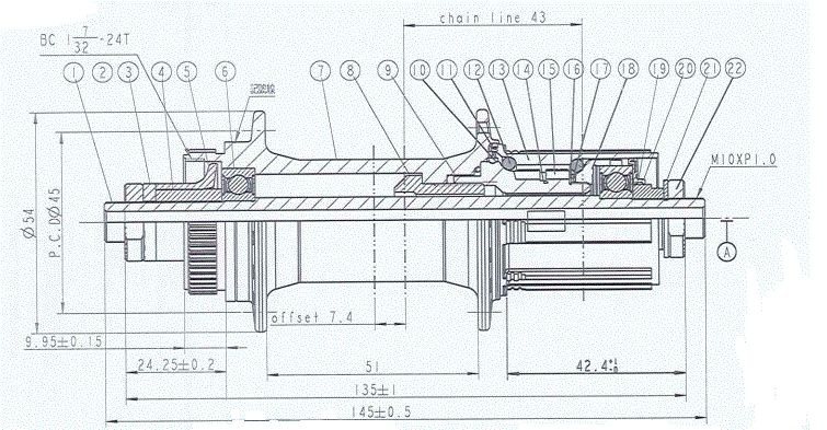 Ořech: ocel Shimano 11S typu S1, s podložkou pro 8/9/10 9rychlostní