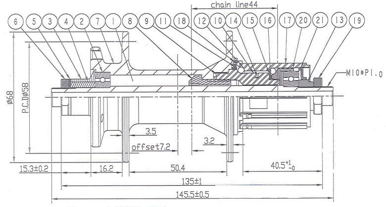 Ořech: ocel Shimano 11S typu S1, s podložkou pro 8/9/10 9rychlostní