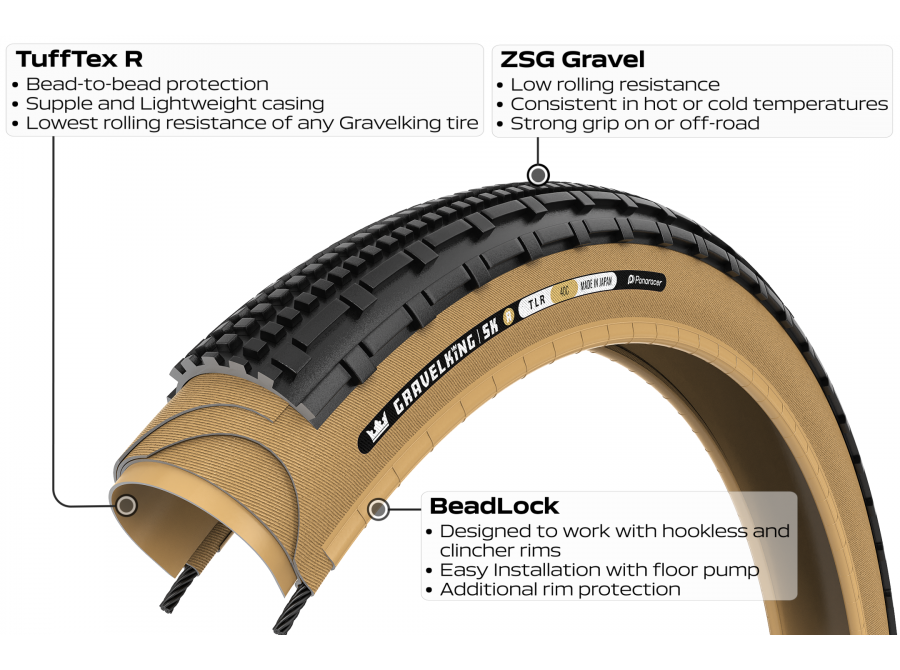 Zcela nový plášť GravelKing SK R s pokročilou konstrukční technologii se stává nejrychlejší a nejpoddajnější verzí GravelKing SK. Agresivnější vzorek, který je navržený pro ježdění v těžších podmínkách, na nezpevněných cestách a nebojí se ani bláta. Ideální volba, když nechcete řešit zda je sucho, mokro, či kterou cestou se vydat.