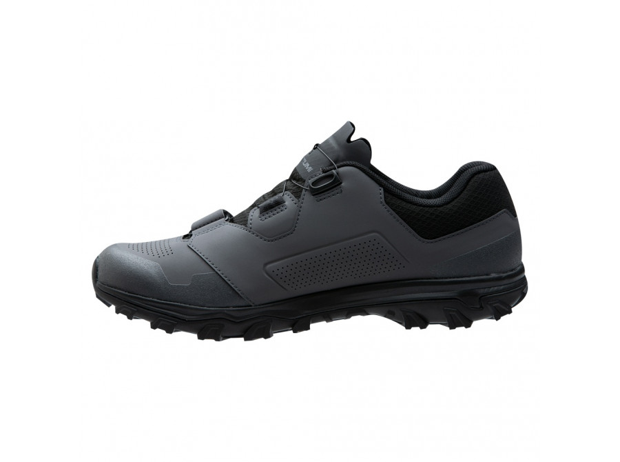 zajišťuje pohodlné a bezpečné uchycení. Svršek ze syntetické kůže má spoustu perforací pro zlepšení ventilace a umožňuje nohám vysušit se po přejezdu potoka. Horská cyklistika může být náročná, proto jsme zesílili oblast prstů,