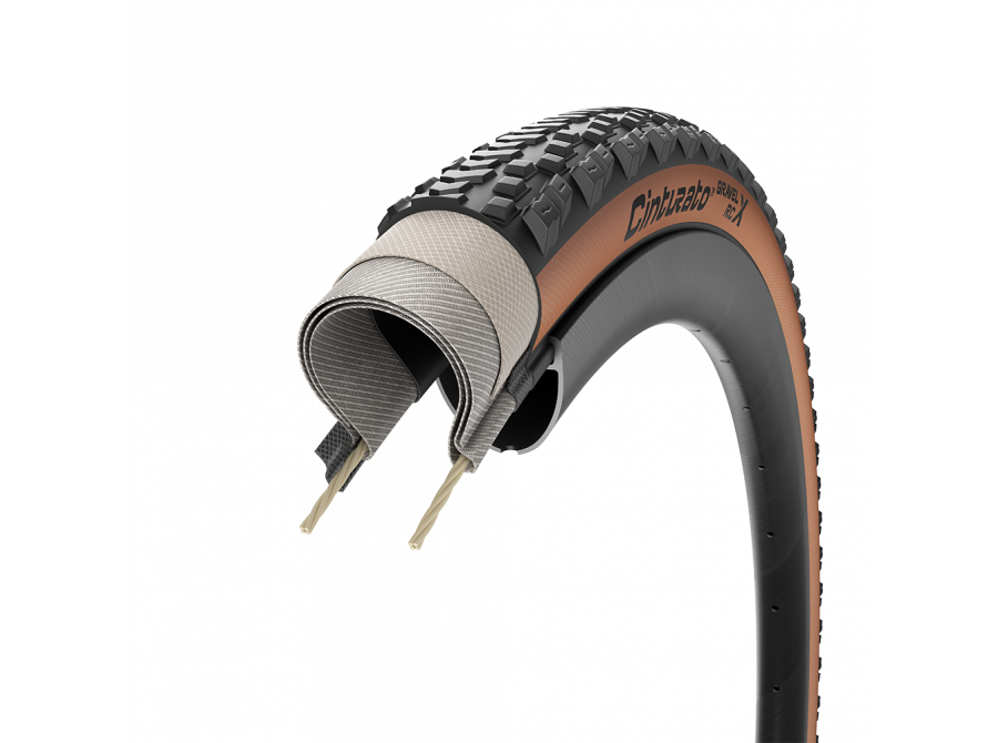 Využívají stejný vzorek dezénu jako Cinturato Gravel RC. Cinturato Gravel RC X je odpovědí na veškeré požadavky gravel závodění v drsnějším terénu: rychlost na rovinách díky minimálním středovým výstupkům a agresivita v zatáčkách díky vyšším a výraznějším výstupkům, které zajišťují stabilitu při zatáčení. Nová konstrukce pláště TechWALL X pro bezdušové provedení obsahuje vyztuženou a odolnou tkaninu o hustotě 60 tpi, která sahá dále přes okraj dezénu a poskytuje ještě větší ochranu bočnic, navíc k již existující ochranné vrstvě od patky k patce.
