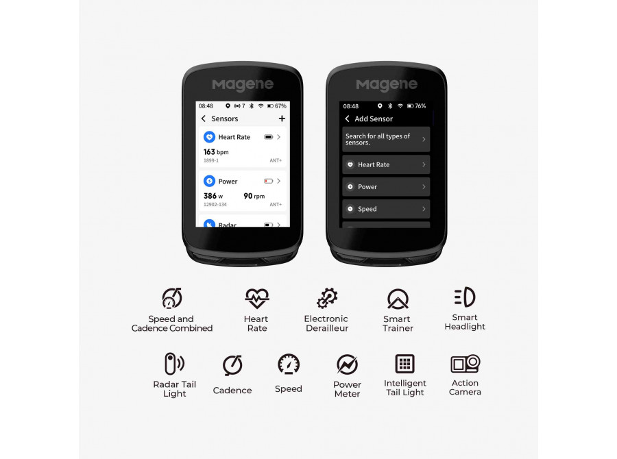 Podporované zařízení: Snímač rychlosti, snímač kadence, monitor srdečního tepu, kombinovaný snímač rychlosti/kadence, měřič výkonu, inteligentní trenažér, radarové zadní světlo a inteligentní zadní světlo L308,