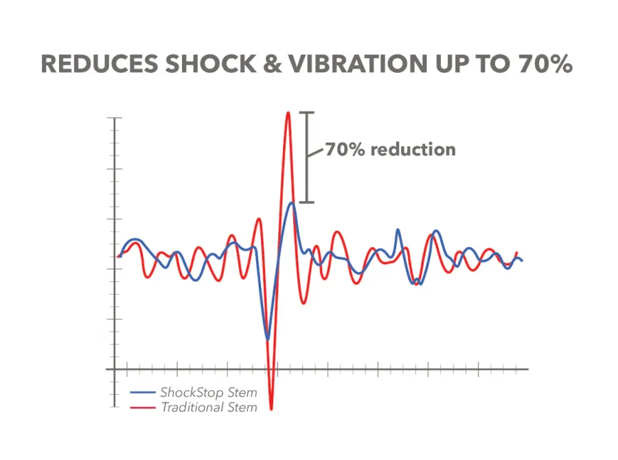 Patentovaný odpružený představec ShockStop vyrovnává nerovnosti vozovky, čímž snižuje únavu a namáhání předloktí. Ať už jedete na místní skupinovou vyjížďku, nebo prozkoumáváte gravel cesty, díky představci ShockStop bude vaše jízda plynulejší, rychlejší a pohodlnější.