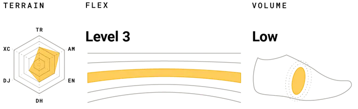 Ride Concepts jako jediný výrobce používá technologii D3O napříč několika modely. D3O všichni určitě znají z chráničů na kolo (Race Face, Bluegrass…). Vnitřní vložka má v oblasti paty a došlapu prstů integrované D3O chrániče pro ochranu od rázů či nedoskočeného dvojáku a následného prošlápnutí paty. Chodidlo je díky D3O méně unavené a náchylné k obraženinám. Tuto technologii jinde nenajdete!