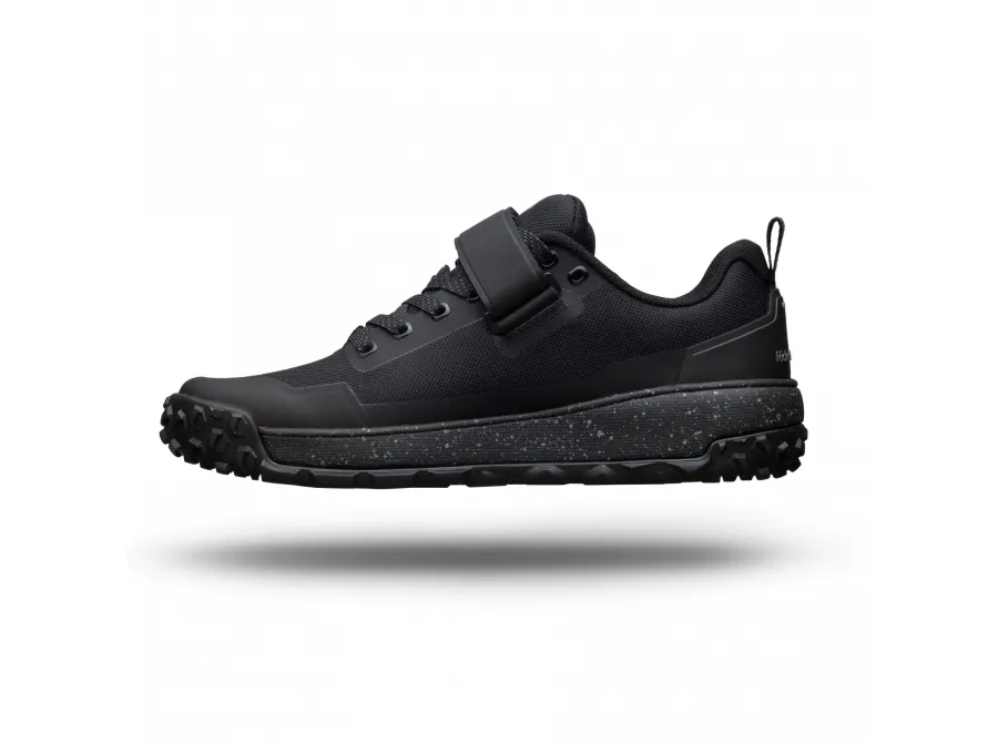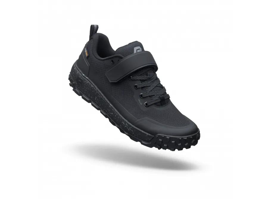 Podrážka Clip Grip s výrazným vzorkem inspirovaným terénní obuví. Přední a zadní část upravena pro grip při chůzi po trailu dolů i nahoru s výrazným přesahem do špičky a paty. Směs podrážky Clip Grip je použita u modelů určených pro SPD a má ideální poměr přilnavosti, odolnosti a tuhosti pro přenos síly vpřed. Výsledek vývoje s firmou Rubber Kinetics (Good Year). 42 mm široký a extrémně dlouhý domeček pro naprostou jistotu zacvaknutí do pedálu v každé situaci. Vložené plastové pouzdro pod umístěním kufrů jako dodatečná opora podrážky.