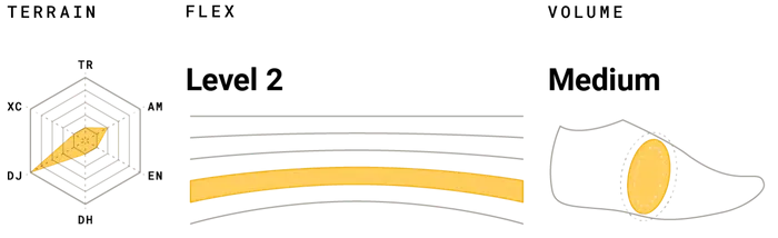 Celá konstrukce včetně podrážky High Grip byla upravena tak, aby jezdci měli blízký kontakt s pedálem a přilnavost tolik, aby noha držela kde má, ale zároveň umožnila pohyb po pedálu při náročných tricích a dopadech. Tomu je uzpůsoben I zcela originální vzorek podrážky, který se od špičky směrem k patě mění.