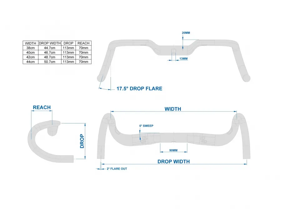 Řídítka jsou vyrobena z prémiových karbonových vláken a vyznačují se kompaktním tvarem oblouků a ergonomickou horní sekcí. Tato kombinace výrazně snižuje únavu a poskytuje lepší oporu rukou během dlouhých dnů (i nocí) v sedle, ať už jedete po asfaltu nebo v terénu. Zvýšení o 20 mm (rise) v oblasti objímky umožňuje vzpřímenější a komfortnější posed, zatímco velkorysý boční náklon spodní části 17,5° (drop flare) zaručuje stabilitu a jistotu bez ohledu na to, co se děje pod vašimi koly.