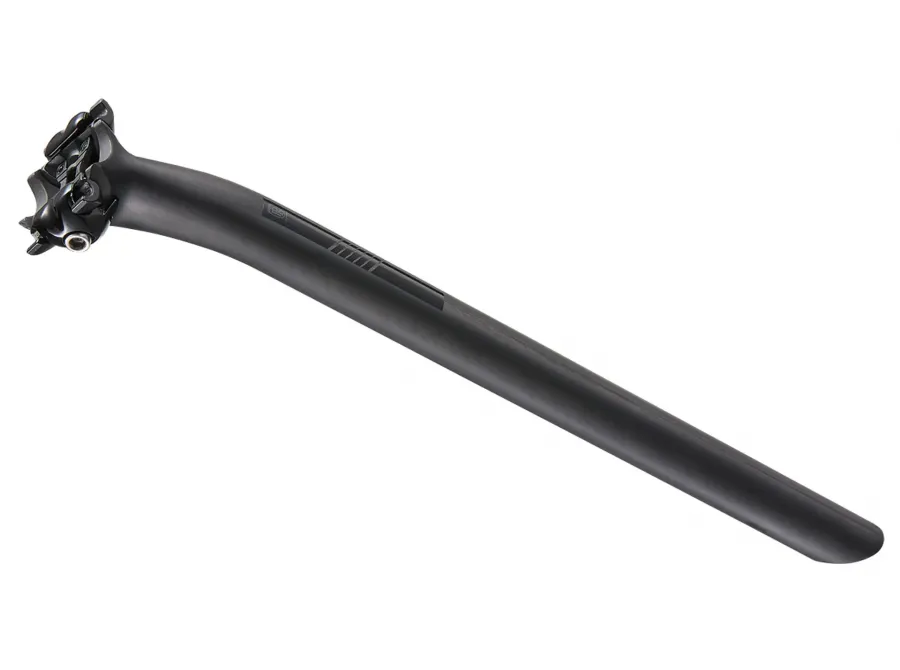 - Technologie FlexLogic: Specifické vrstvení karbonu navržené tak, aby sedlovka vertikálně pružila a pohlcovala nárazy, ale zůstala bočně tuhá.