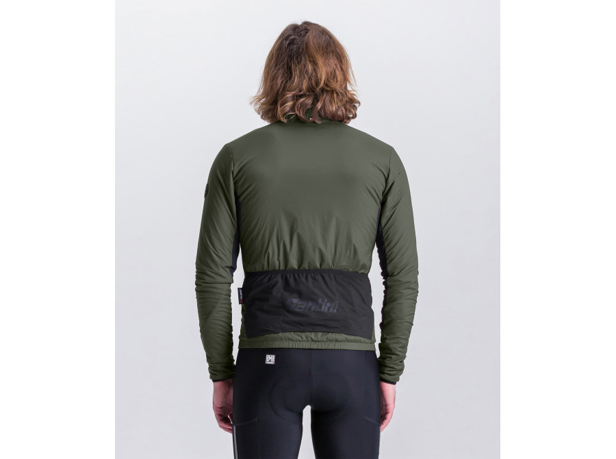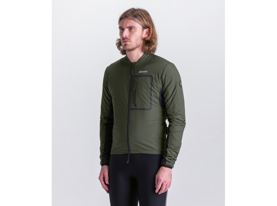 SANTINI Alpha Trail je revoluční bunda, která je perfektní na kolo, ale i jiné outdoorové aktivity. Vnější vrstva z ultralehké tkaniny uvnitř obohacena o materiál Polartec® Alpha® Direct s vlnou Merino zajišťuje prodyšnost, zároveň termoregulaci a pohodlí. Model odolává vlhkosti a neuvěřitelně rychle schne. Malá tepelně podlepená kapsa na zip na hrudi umožňuje ukrýt osobní věci a zadní kapsy ze síťoviny, reflexní detaily a ergonomický střih dotvářejí bundu k univerzálnímu a výjimečně pohodlnému modelu.