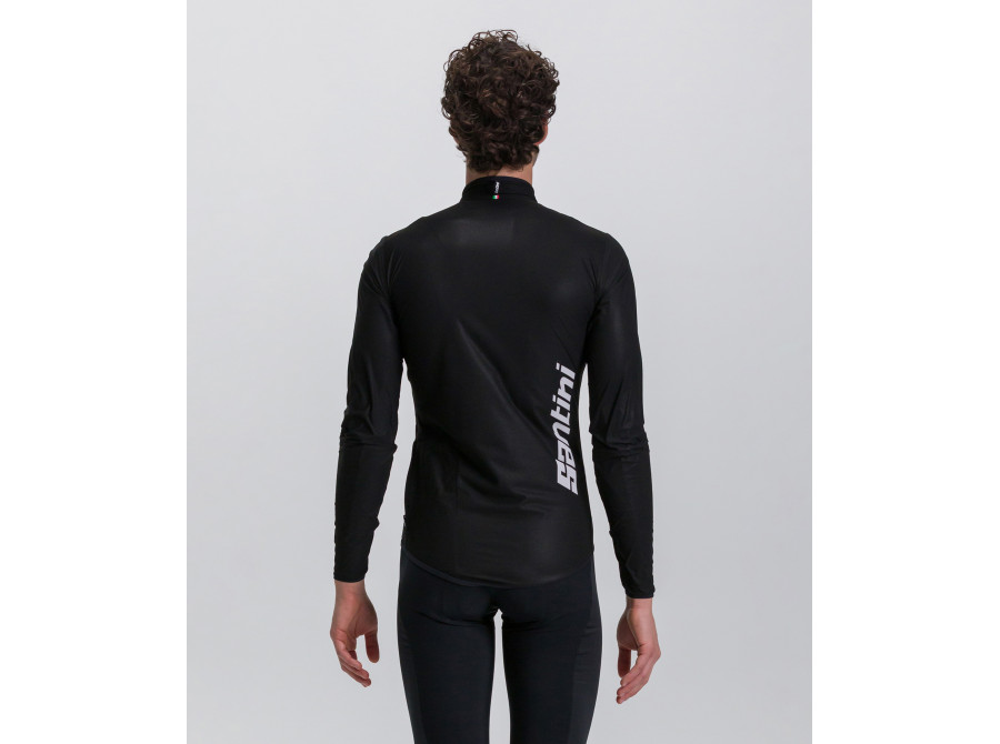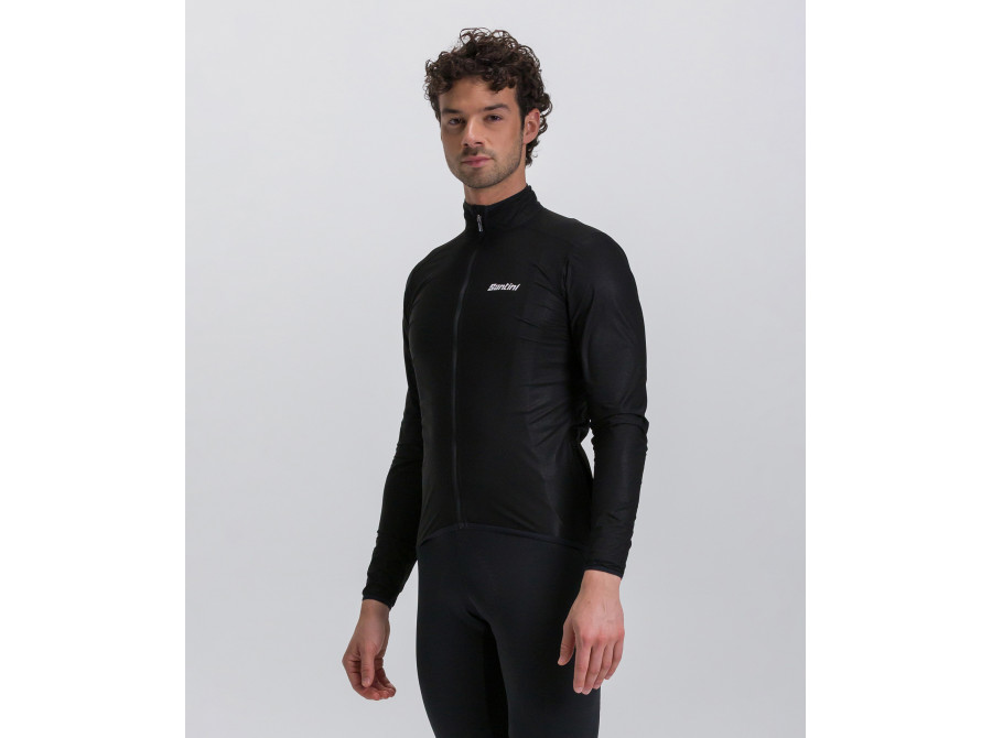 SANTINI Guard Nimbus je bunda vhodná do deště, mírných teplot a vlhkých podmínek. Oceníte její 100% nepromokavost díky dvouvrstvé tkanině Grimpeur a tepelně svařovaným švům, ergonomický střih a ultralehký, aerodynamický design. Ergonomicky střižené voděodolné manžety rukávů a superelastické provedení dělají z této bundy dokonalý závodní model. Navíc je sbalitelná do kapsy. Reflexní tečky na hrudi plus reflexní logo Santini na zádech zajišťují maximální bezpečnost za snížené viditelnosti a do boční nepromokavé kapsy na zip si můžete schovat nezbytné maličkosti.