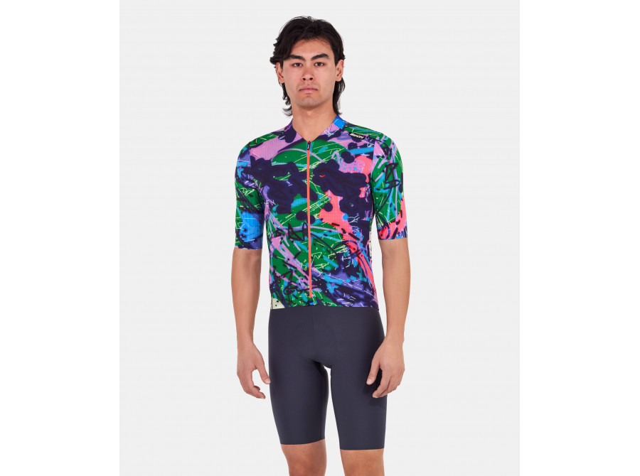 Pro dokonalou stabilitu během jízdy je dres vybaven elastickým páskem se silikonovým gripem na zádech a hrubě střiženými rukávy. Tři laserem řezané kapsy se diskrétně přizpůsobí tělu, když nejsou využity, čímž zachovávají čistý aerodynamický vzhled. Bezpečnost zvyšuje reflexní pásek integrovaný do zadního elastického pásku, který zajišťuje lepší viditelnost na silnici.