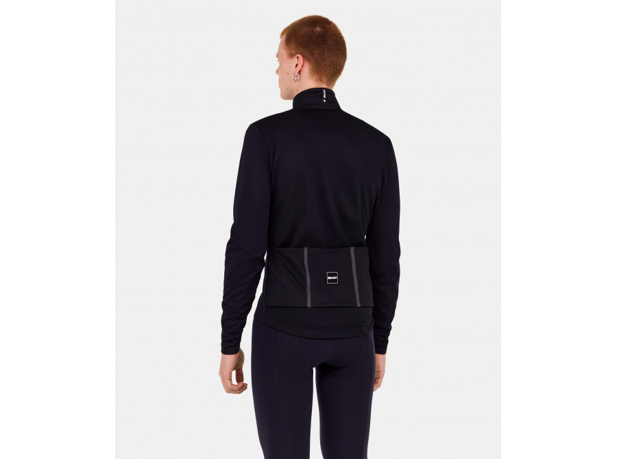 Přiléhavý slim fit drží bundu na místě i v nízké aerodynamické pozici. Na zádech najdeš tři klasické kapsy pro výživu a náhradní vrstvy a jednu skrytou vnitřní kapsu pro cennosti. Reflexní prvky na zadní straně zvyšují viditelnost v mlze, šeru i za špatného počasí. Praktický detail v podobě poutka na límci usnadňuje sušení po tréninku, a vnitřní štítek s legendárními bergamskými stoupáními dodává bundě osobitý charakter.