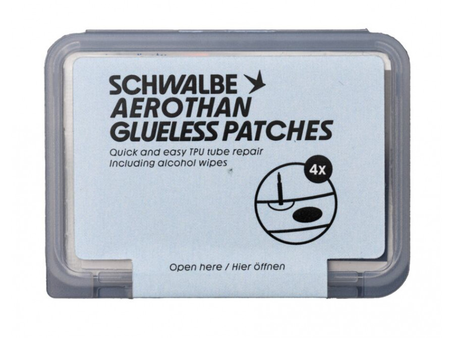 S pomocí samolepicích záplat Schwalbe lze díru v duši Aerothan opravit snadno a rychle. Záplaty byly vyvinuty a jsou určeny pro opravy duší Schwalbe TPU. Specifika opravy Aerothan duší: Žádné broušení: Na rozdíl od klasické duše nesmíte Aerothan brousit smirkovým papírem! Tím byste stěnu duše nenávratně poškodili. Alkoholový čistič: Klíčem k úspěchu je přiložený alkoholový ubrousek. Místo kolem defektu musí být naprosto sterilní a zbavené mastnoty z prstů. Speciální adhezivo: Záplaty pro Aerothan využívají speciální lepidlo, které vytvoří s TPU materiálem velmi silnou vazbu, která odolá vysokému tlaku i teplotám.