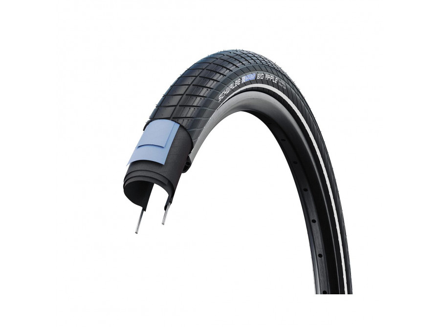 Integrované pružení. S Big Applem začal před 10ti roky trend balónových kol: komfortní cyklistika bez nákladné techniky! Vzduchový polštář pláště je používán jako přirozené pružení. S tlakem cca 2 bary balónové kolo lehce jede a přitom plně pruží. Normální plášť šířky 37mm musí být nahuštěn aspoň na 4 bary, aby se odvaloval stejně.