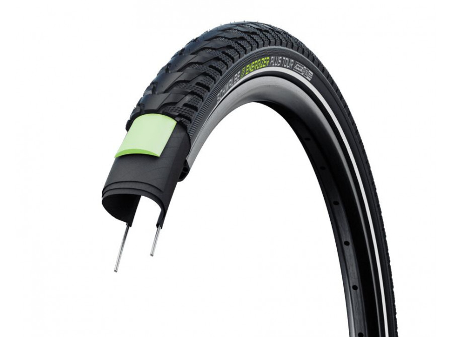 Pokud baterie vydrží . Nekonečné potěšení z jízdy s e-touringovým specialistou Energizer Plus Tour. S 3mm GreenGuardem na stejné úrovni bezpečnosti jako Energizer Plus, ale se silnějším přepracovaným trekingovým profilem, který se dříve osvědčil na našem Marathonu GT Tour jako ideální společník pro e-výlety na zpevněných cyklostezkách, ale i mimo ně. Samozřejmě s vysoce kvalitní konstrukcí (kostra 67 EPI), specializovanou směsí Energizer a certifikací ECE-R75 pro e-kola všech tříd.