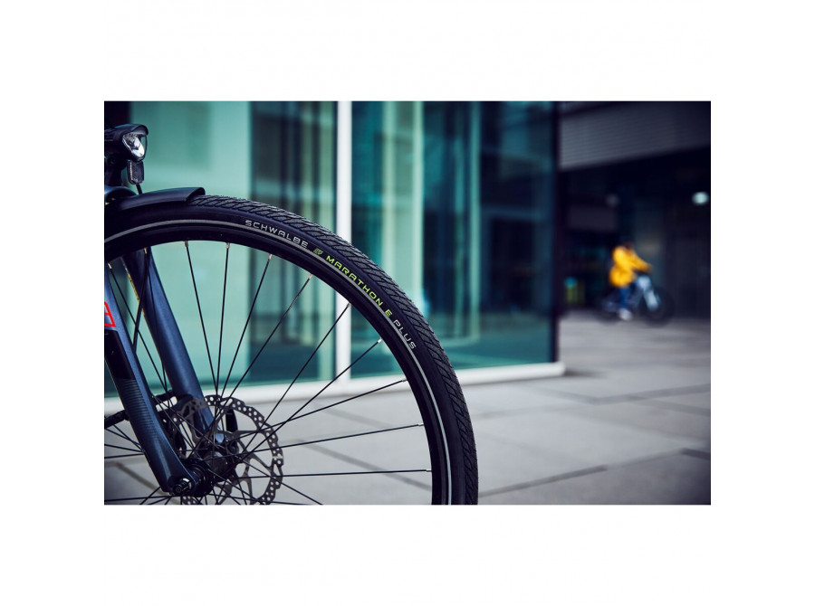 Neprorazitelný speciálně pro e-kola . Maximální bezpečnost jízdy při vysokých rychlostech a na dlouhých cestách. Nejvyšší kvalita maratonu, vyvinutá pro speciální nároky kladené na plášť pro e-bike. Bezpečnost: Stupeň ochrany proti defektu Schwalbe 7. Patentovaná vložka SmartGuard je navíc podporována dvěma vrstvami tkaniny RaceGuard. Tento „Smart-DualGuard“ chrání ještě lépe proti ostrým vetřelcům. Řízen í: Směs ADDIX-E, určená speciálně pro e-kola pro vynikající přilnavost i při vysokých rychlostech a maximální trvanlivost. Potěšení z jízdy: Marathon E-Plus se díky použití špičkového materiálu neuvěřitelně snadno odvaluje. Boční stěna „anti-aging“ vydrží typické přetížení v důsledku nízkého tlaku vzduchu mnohem déle, než dojde k ošklivým trhlinám. Nová konstrukce kostry zpevňuje boční stěny jinou vrstvou tkaniny, čímž stabilizuje pneumatiku pro ještě větší nosnost. Provedení: design profilu E-Plus je moderní a dynamický. S větší hloubkou profilu běhounu, extrémně univerzální pro turistiku a trekking. E-bike : Nový Marathon E-Plus je samozřejmě ECE-R75 certifikován a je také připraven pro e-kola s asistencí do 25 km / h, stejně jako S-pedelecs. Dostupné velikosti jsou důsledně orientovány na požadavky nejmodernějších e-kol.