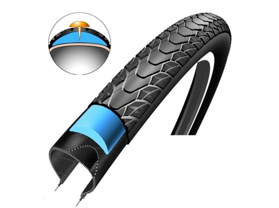 Neprorazitelný plášť pro vozíky. Marathon je momentálně absolutně referenční plášť s ochranou pro vozíky.Ochranný pás SmartGuard je vyráběn zčásti z recyklovaného přírodního kaučuku.Bok Anti-Aging snese typické přetížení vzniklé nedostatečným tlakem, podstatně déle.